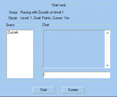 Pozostało jeszcze ustawienie, czy w grze mają być dostępne zaklęcia. Ich działanie przedstawione jest w dziale Opis Gry. Polecam ich włączenie - gra jest wówczas dużo ciekawsza. Teraz możesz już wybrać OK, po czym zostaniesz przeniesiony do okna czatu. Gdy do gry dołączą twoi koledzy, naciśnij znajdujący się po lewej stronie przycisk Start, a wówczas włączy się wczytywanie poziomu.
